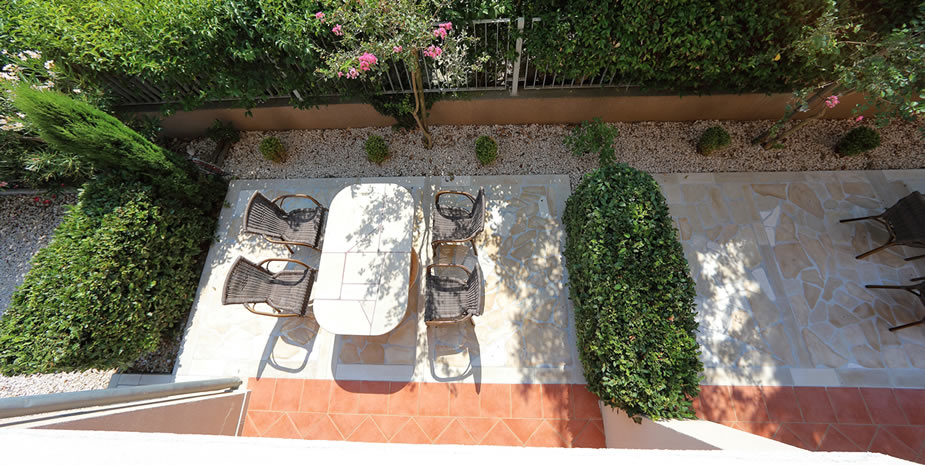 Villa Palma has paved terrace with BBQ facility and large communal seating area in garden.